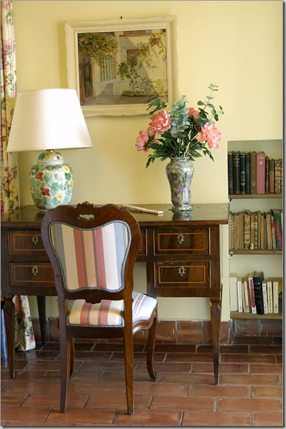 Close-up of the Italian antique desk in the bedroom. So many books!