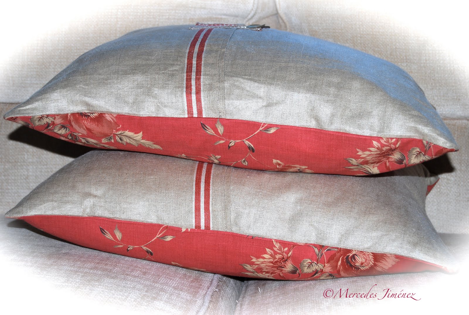 Hoy te muestro los cojines grandes acabados de forma sencilla en la parte delantera , aprovechando el estampado, y detrás con doble abotonadura.